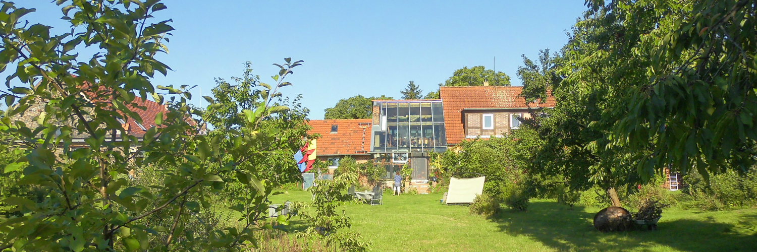 Künstlerhof mit Obstgarten und einer beeindruckenden Feldsteinscheune